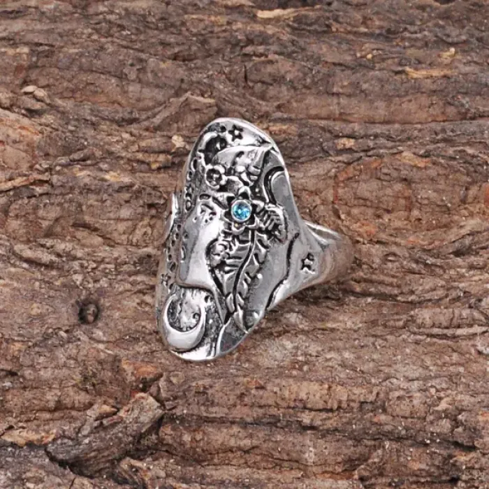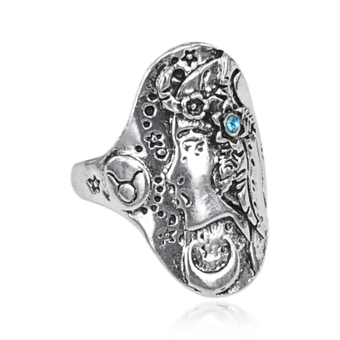 Кольцо с символом знака зодиака Телец. Металлическое изделие с покрытием под серебро и вставкой стразы.