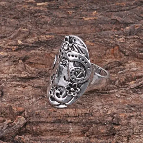Кольцо с символом знака зодиака Овен. Изготовлено из металла с покрытием под серебро и вставкой из страза.