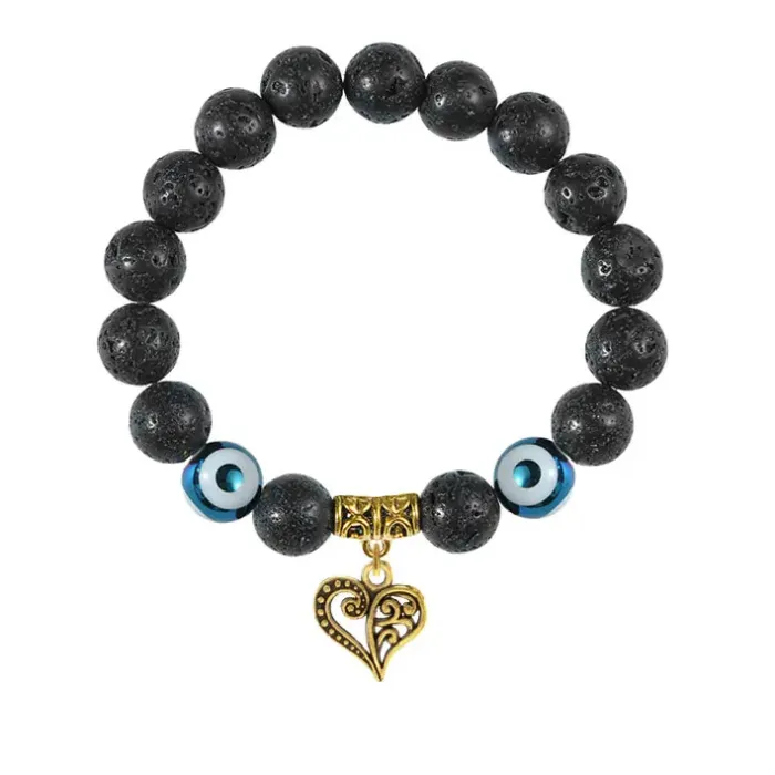 Браслет с фарфоровыми бусинами Дзи и подвеской Сердце (любовь и семейное счастье), лава 10мм BSPD10-02-0010