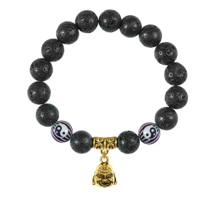 Браслет с фарфоровыми бусинами Инь-Ян и подвеской Бог богатства (изобилие и благополучие), лава 10мм BSPD10-03-0025