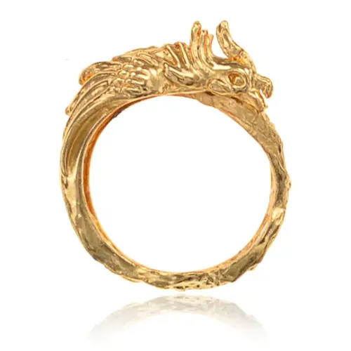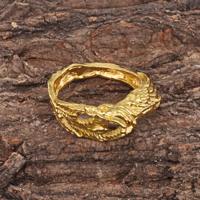Кольцо из бижутерного сплава с дизайном в виде дракона и покрытием под золото.