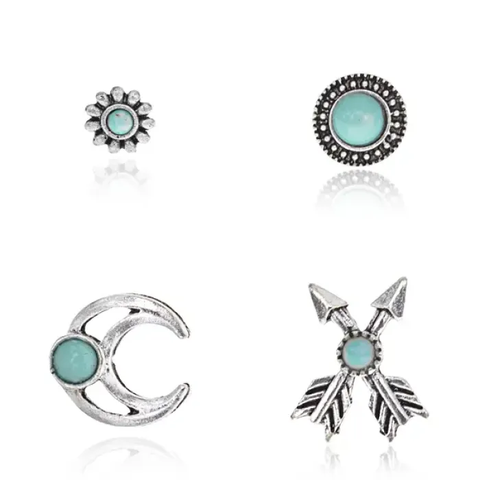 Набор из четырёх пар серёг для ношения, выполненных из металла с серебристым покрытием, с замком типа пусет.