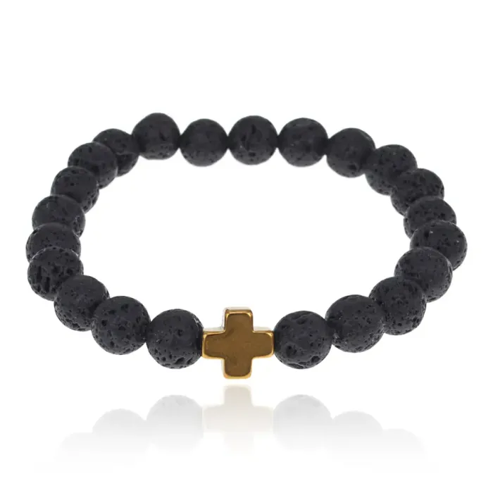 Христианский браслет с крестиком из металла, лава, 8мм BJBS-335