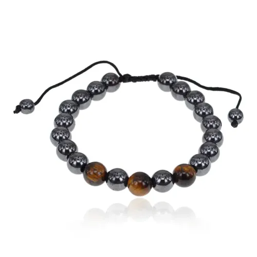 Браслет из тигрового глаза и немагнитного гематита, 8мм BJBS-344