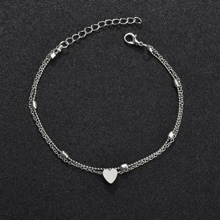 Браслет на ногу Сердце, цвет серебряный BS611-02