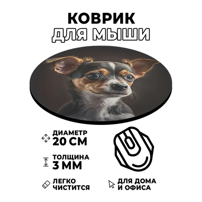 Коврик для компьютерной мыши с изображением собаки — это не только практичный аксессуар, но и стильный элемент рабочего пространства. Он станет отличным подарком для любителей животных и добавит яркие акценты в интерьер.