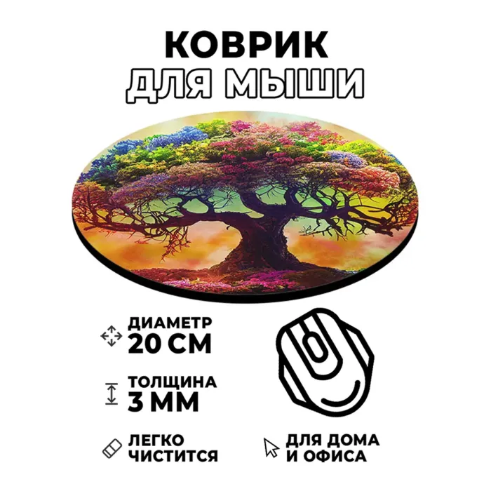 Коврик для компьютерной мыши круглой формы с изображением Древа жизни.
