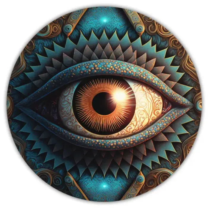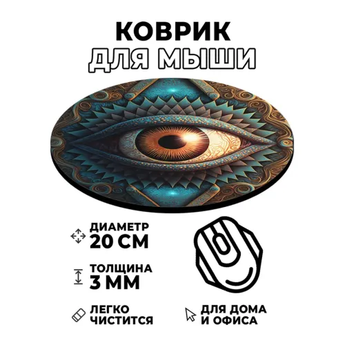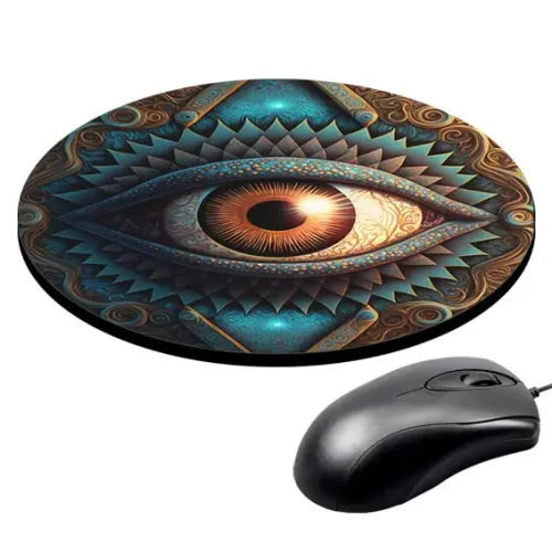 Коврик для компьютерной мыши с круглой формой и изображением глаза.