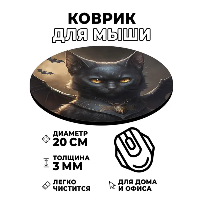 Коврик для компьютерной мыши с оригинальным изображением кота с крыльями станет ярким акцентом на рабочем месте. Этот аксессуар не только украшает пространство, но и обеспечивает комфорт в использовании.