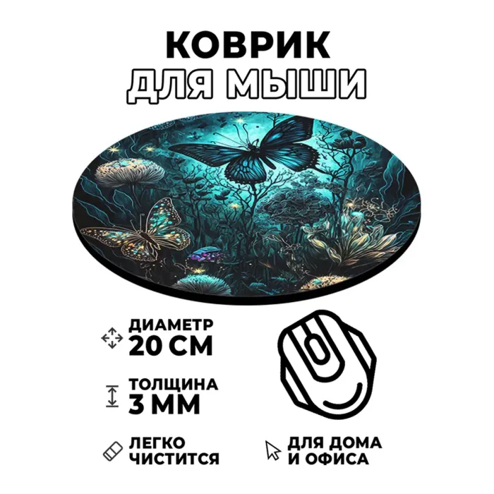 Коврик для мыши с изображением бабочек — это не только практичный аксессуар, но и стильное дополнение рабочего пространства. Он создан для комфортного использования компьютерной мышки и добавляет яркие акценты в интерьер.