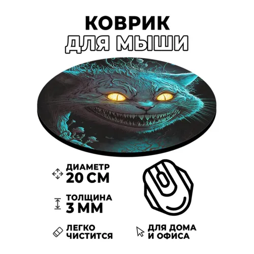 Коврик для компьютерной мыши с изображением Чеширского кота — это не просто аксессуар, а стильный элемент рабочего пространства. Он идеально подходит для создания уютной атмосферы и добавления ярких красок в повседневную рутину.