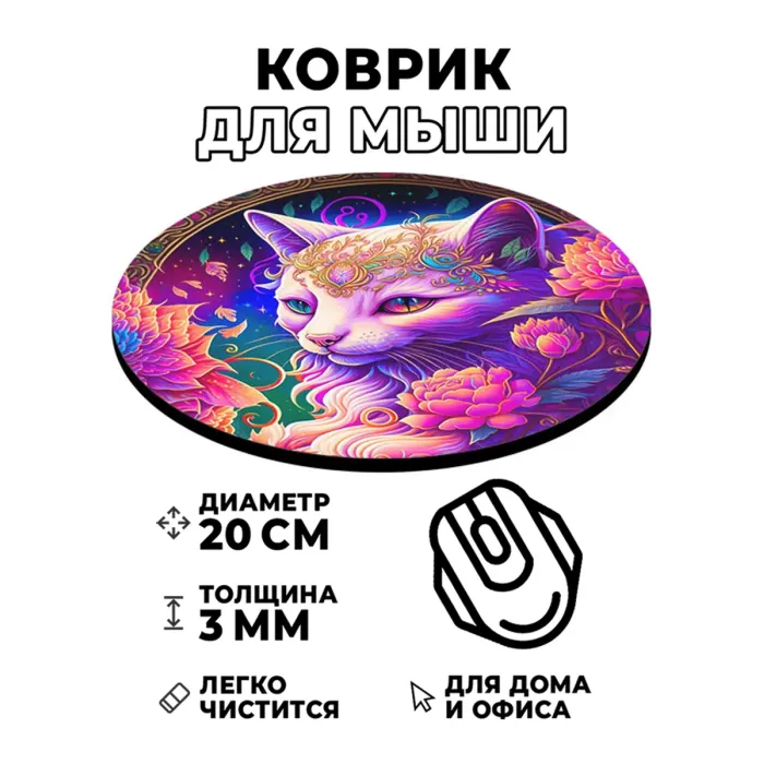 Коврик для мыши с изображением кошки — это не только практичный аксессуар, но и стильный элемент рабочего пространства. Он добавляет индивидуальности и уюта в офис или дом.