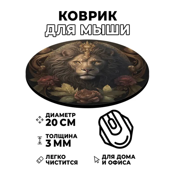 Коврик для мыши с изображением льва — это не только практичный аксессуар, но и стильный элемент рабочего пространства. Он станет ярким акцентом на столе и подчеркнёт индивидуальность.
