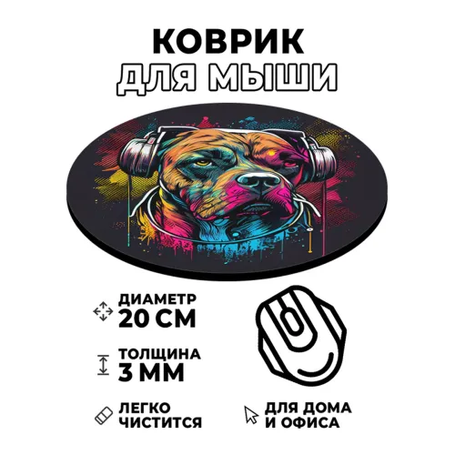 Коврик для компьютерной мышки с изображением пса станет стильным дополнением рабочего места. Он не только украшает, но и обеспечивает комфорт во время работы или игры. Диаметр коврика составляет 20 см, а толщина — 3 мм, что гарантирует отличное скольжение мышки и удобство в использовании.