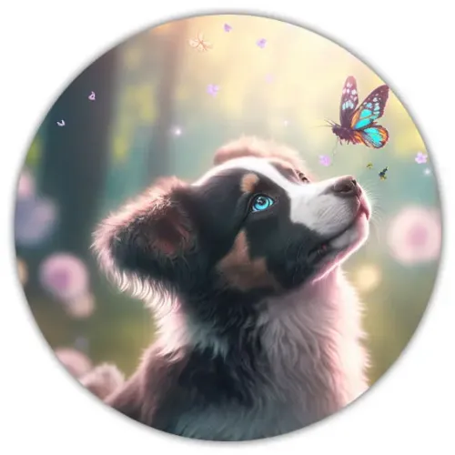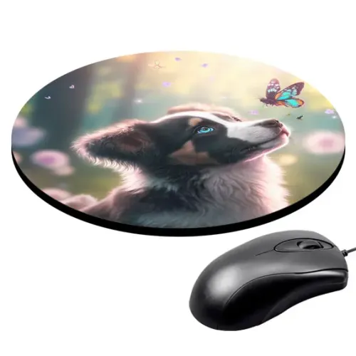 Коврик для мыши Щенок и бабочка, d.20см KM0236