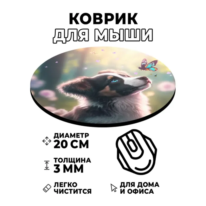 Коврик для компьютерной мыши с изображением щенка и бабочки — это не только практичный аксессуар, но и стильный элемент декора рабочего пространства. Он обладает диаметром 20 см и толщиной 3 мм, что обеспечивает комфортное использование. Изображение на коврике отличается стойкостью, четкостью и контрастностью, что делает его привлекательным для глаз. Кроме того, коврик обеспечивает отличное скольжение мышки, позволяя работать или играть без лишних усилий. Такой аксессуар станет прекрасным дополнением к любому офису или домашнему компьютеру.