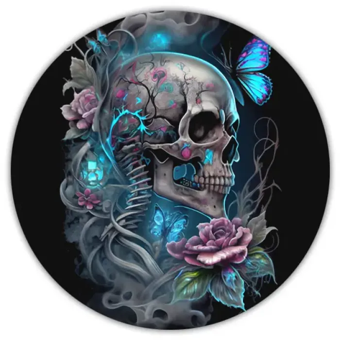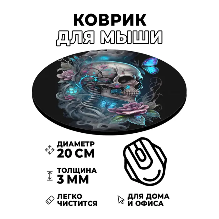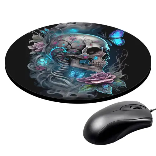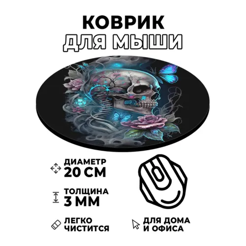 Коврик для компьютерной мыши круглой формы с изображением черепа.