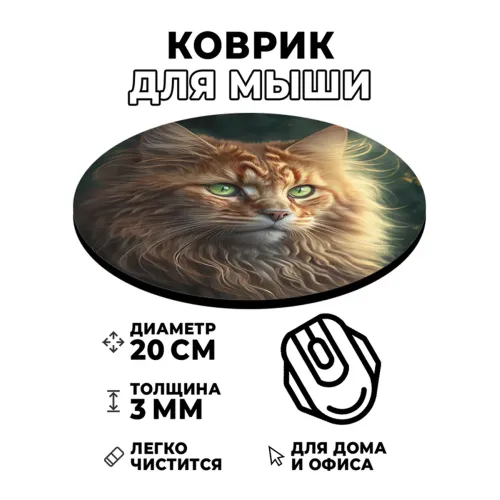 Коврик для мыши с изображением кота станет ярким акцентом на рабочем столе и добавит уют в офис или дом. Он выполнен из качественных материалов, что обеспечивает долговечность и стойкость изображения. Диаметр коврика составляет 20 см, а толщина — 3 мм, что гарантирует комфортное использование. Благодаря хорошему скольжению мышки работа за компьютером станет более приятной и эффективной. Этот коврик не только функционален, но и способен поднять настроение благодаря своему оригинальному дизайну.