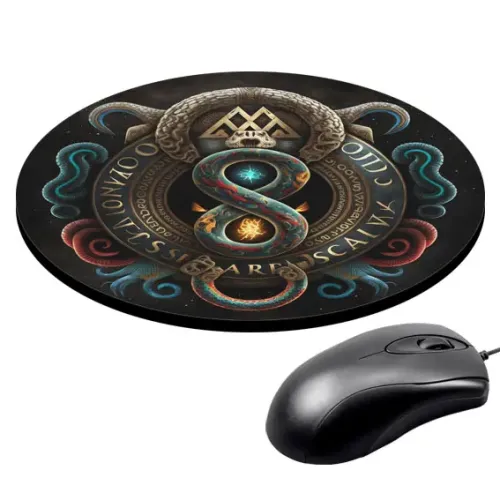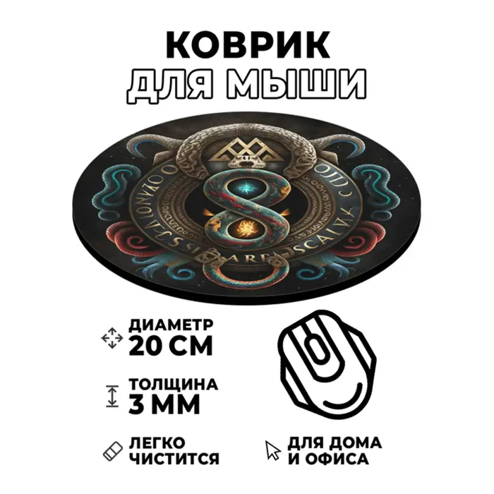 Коврик для мыши круглой формы с изображением амулета бесконечности.