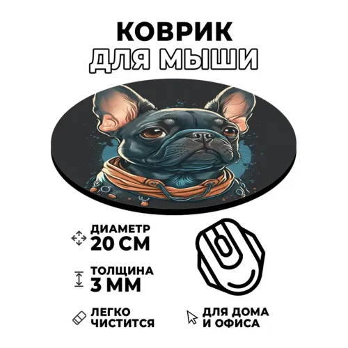 Коврик для мыши с изображением мопса — это не просто аксессуар, а стильный элемент рабочего пространства. Он станет отличным подарком и добавит индивидуальности любому столу.