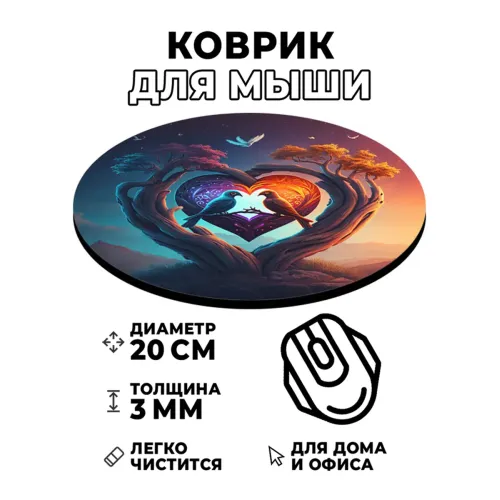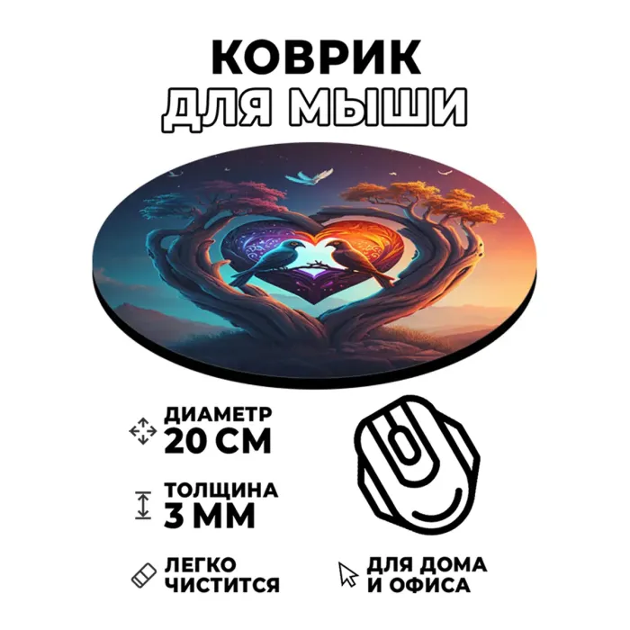 Коврик для компьютерной мыши с изображением птиц — это не только практичный аксессуар, но и стильный элемент декора рабочего места. Он обладает диаметром 20 см и толщиной 3 мм, что обеспечивает комфортное использование в течение долгого времени.
