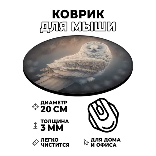 Коврик для компьютерной мыши с изображением совы — это не только практичный аксессуар, но и стильный элемент рабочего пространства. Он обладает диаметром 20 см и толщиной 3 мм, что обеспечивает комфортное использование. Изображение на коврике отличается стойкостью, четкостью и контрастностью, добавляя яркие акценты в повседневные задачи. Кроме того, он гарантирует отличное скольжение мышки, что делает работу более эффективной и приятной. Такой коврик станет замечательным подарком или украшением стола для любителей природы и оригинального дизайна.