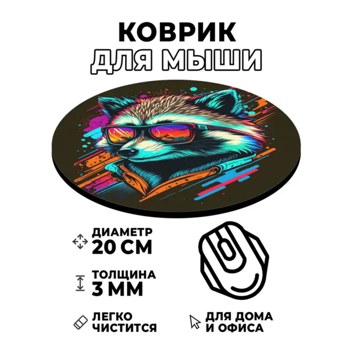 Коврик для мыши с изображением енота — это не только практичный аксессуар для компьютера, но и стильный элемент декора рабочего места. Он обладает стойким, четким и контрастным изображением, которое добавит яркие акценты в повседневную рутину.