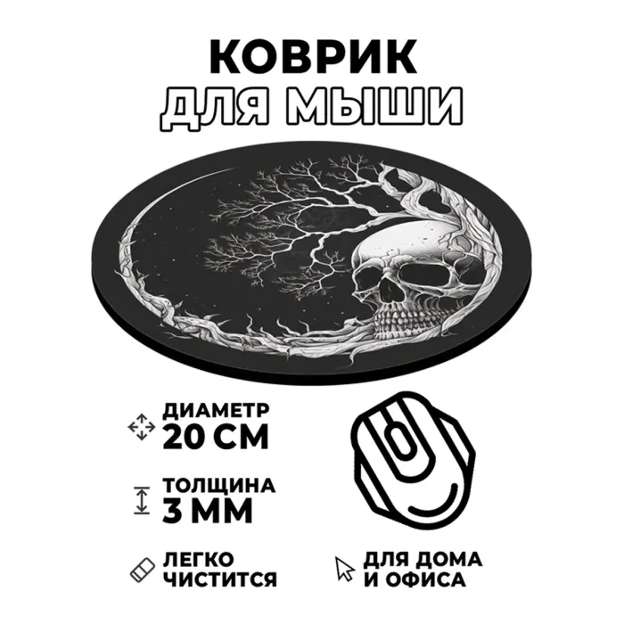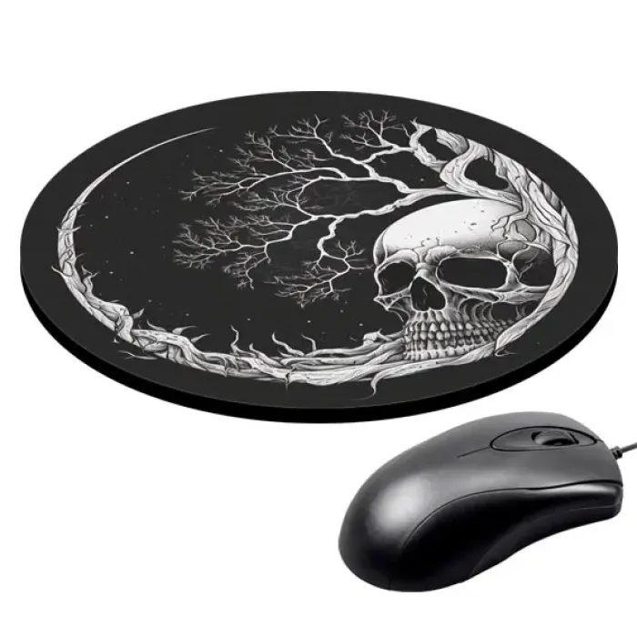 Коврик для компьютерной мыши круглой формы с изображением черепа.