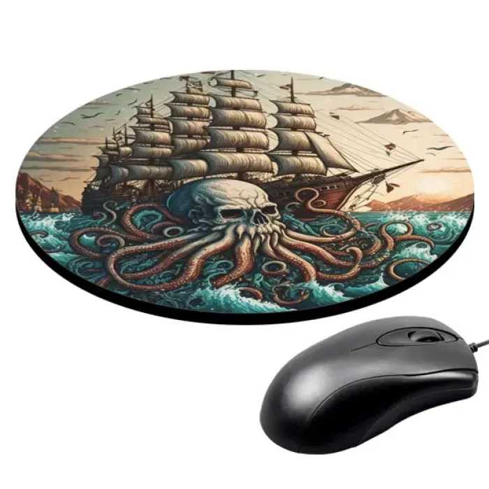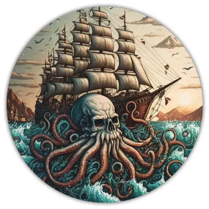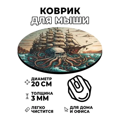 Коврик для мыши Кракен и парусник, d.20см KM0272