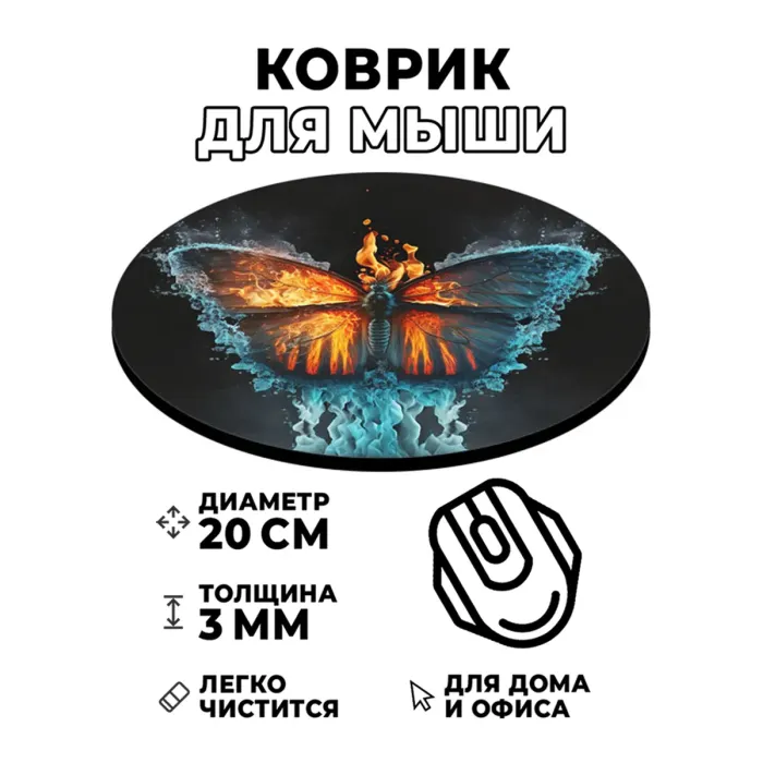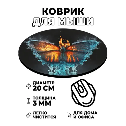 Коврик для мыши Огонь и лед бабочка, d.20см KM0273