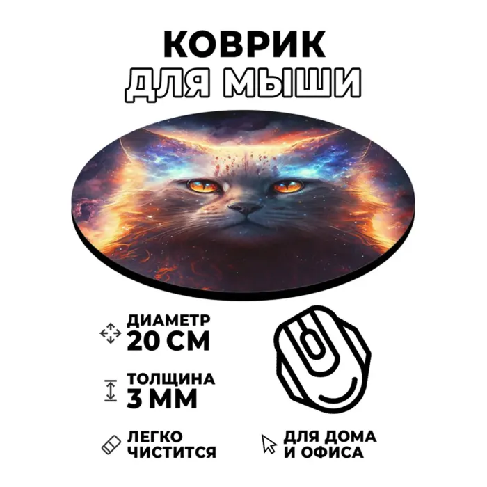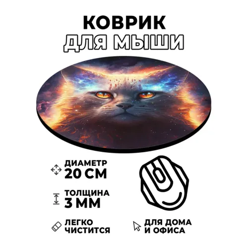 Коврик для компьютерной мыши с изображением кота станет стильным дополнением рабочего места. Он обладает диаметром 20 см и толщиной 3 мм, что обеспечивает комфорт при использовании. Изображение на коврике отличается стойкостью, четкостью и контрастностью, что делает его не только функциональным, но и эстетически привлекательным. Благодаря хорошему скольжению мышки работа за компьютером становится более приятной и продуктивной.