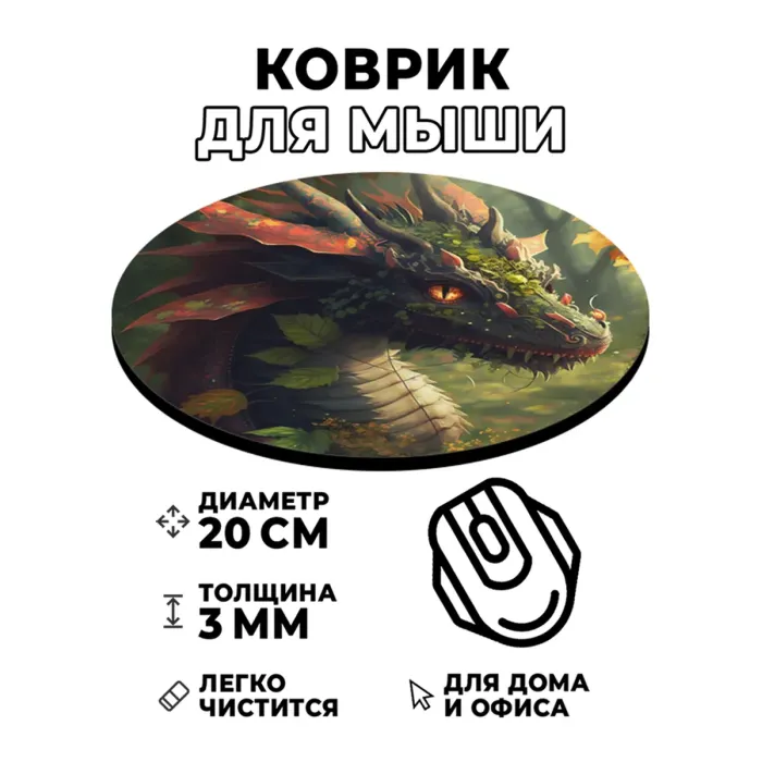 Коврик для компьютерной мыши с изображением дракона станет ярким акцентом рабочего пространства и источником вдохновения. Он не только украшает стол, но и обеспечивает комфортное использование мыши благодаря своим характеристикам.