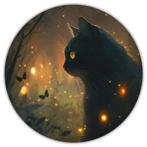 Коврик для мыши Кошка и бабочки, d.20см KM0299