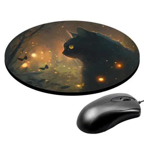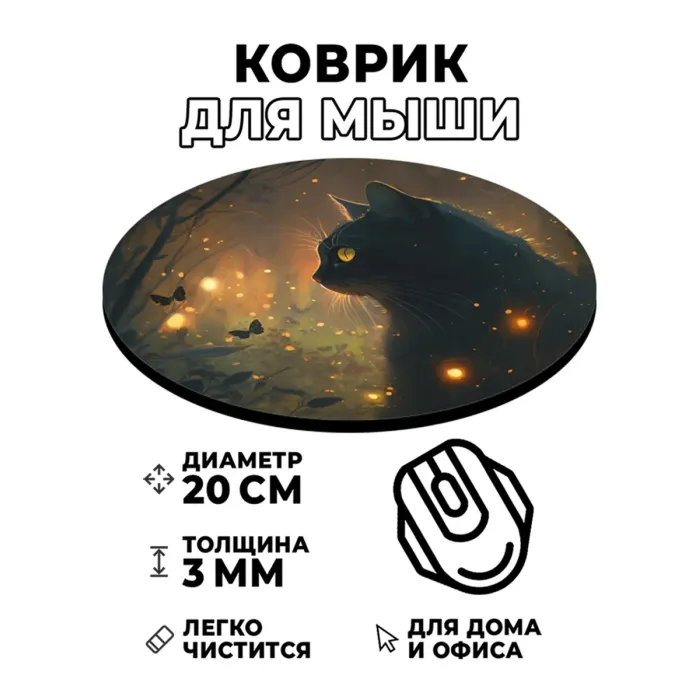 Коврик для компьютерной мыши с изображением «Кошка и бабочки» станет ярким акцентом рабочего пространства. Он не только украшает стол, но и обеспечивает комфорт в использовании благодаря своим характеристикам.