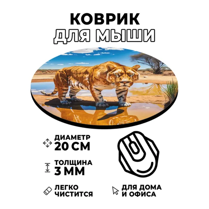 Коврик для компьютерной мыши с изображением тигра станет стильным дополнением рабочего места. Он не только украшает пространство, но и обеспечивает комфорт при использовании мышки.