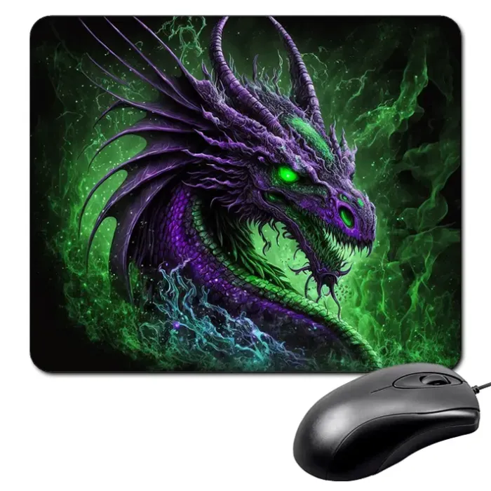 Коврик для мыши с изображением дракона — это стильный и практичный аксессуар, который не только украсит рабочее место, но и обеспечит комфорт при использовании компьютерной мышки. Прорезиненная основа гарантирует надежное сцепление с поверхностью стола.