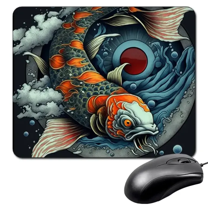 Коврик для мыши с изображением карпа — это не только практичный аксессуар, но и стильный элемент рабочего пространства. Прорезиненная основа обеспечивает надежное сцепление с поверхностью стола, а размер 22х18 см и толщина 3 мм делают его удобным в использовании.