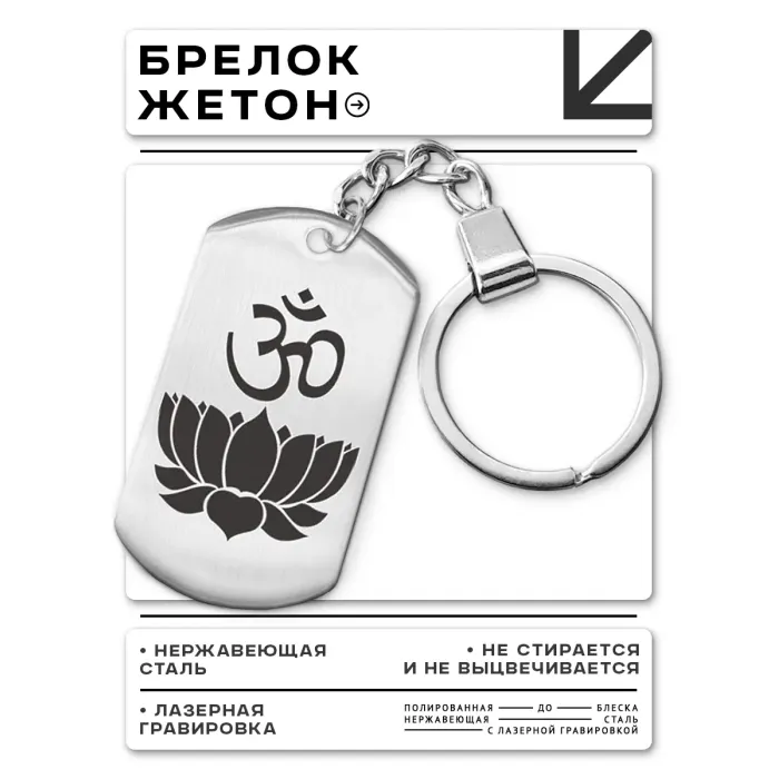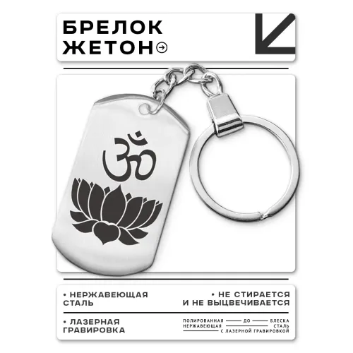 Брелок-жетон из нержавеющей стали с односторонней лазерной гравировкой знака Ом и цветка лотоса.