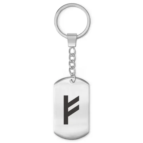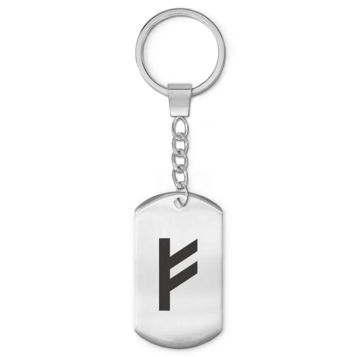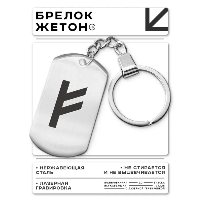 Брелок-жетон Феху выполнен из нержавеющей стали с односторонней лазерной гравировкой.