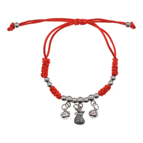 Браслет из красной нити с символикой кошелька. Изготовлен из прочной нити, имеет регулируемую длину и декоративные бубенцы.