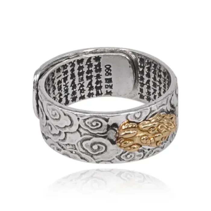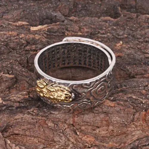Безразмерное кольцо с монетой Пи Щу, ширина 9 мм.