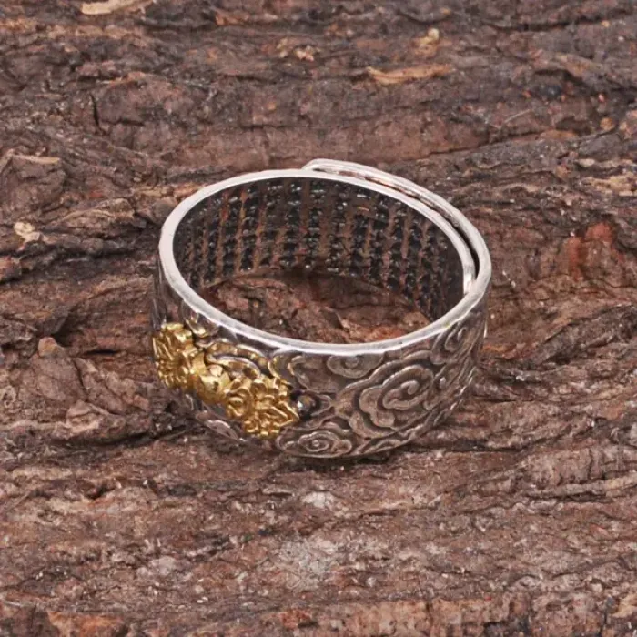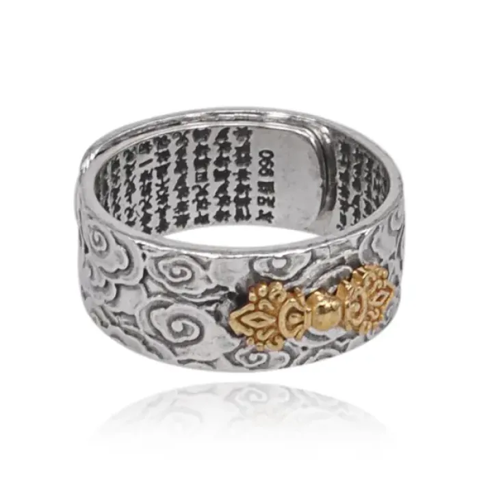 Безразмерное кольцо Ваджра из металла с покрытием под серебро и золото.