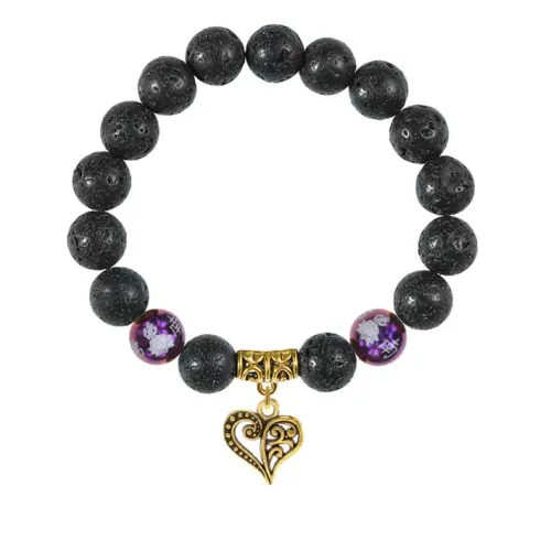 Этот браслет-амулет из натурального камня Лава станет не только стильным аксессуаром, но и символом любви и семейного счастья. Подвеска в виде сердца выполнена из бижутерного сплава с покрытием под золото, а две фарфоровые бусины Лотос добавляют уникальности.
