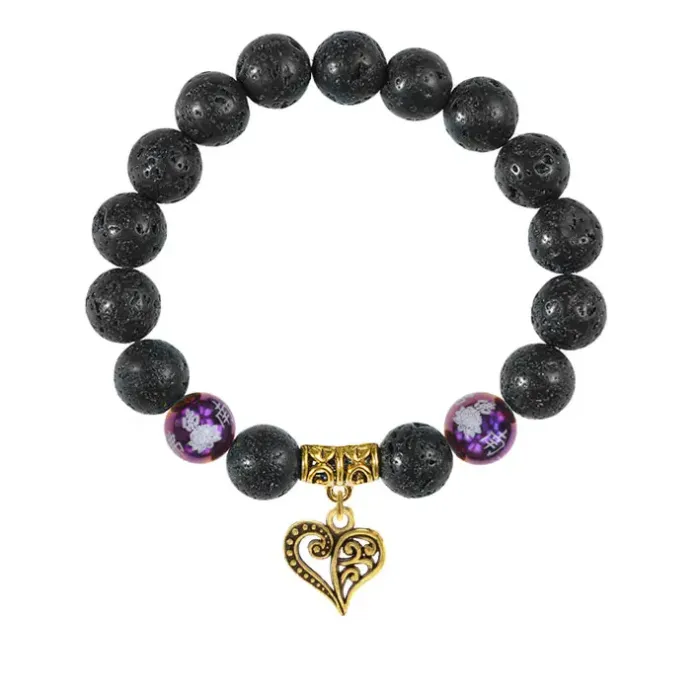 Браслет с фарфоровыми бусинами Лотос и подвеской Сердце (любовь и семейное счастье), лава 10мм BSPD10-05-0010