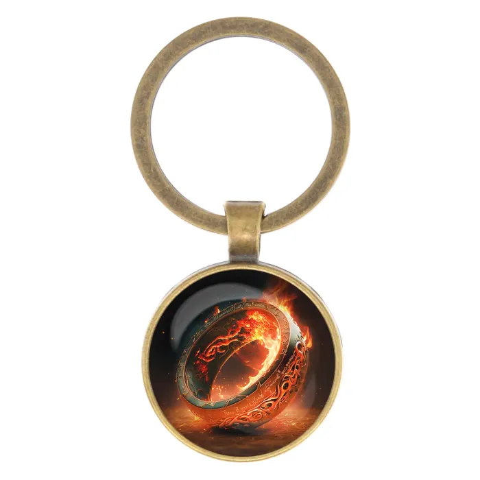 Брелок Кольцо всевластья — это стильный аксессуар, который привносит в повседневную жизнь элементы волшебства и загадки. Изготовленный из бижутерного сплава с эффектным покрытием под бронзу, он станет не только практичным предметом для ключей, но и оригинальным украшением. Диаметр брелка составляет 28 мм, а изображение под выпуклой стеклянной линзой создает впечатляющий визуальный эффект. Упаковка выполнена из прозрачного полипропилена без подвеса, что делает его идеальным для подарка или личного использования.