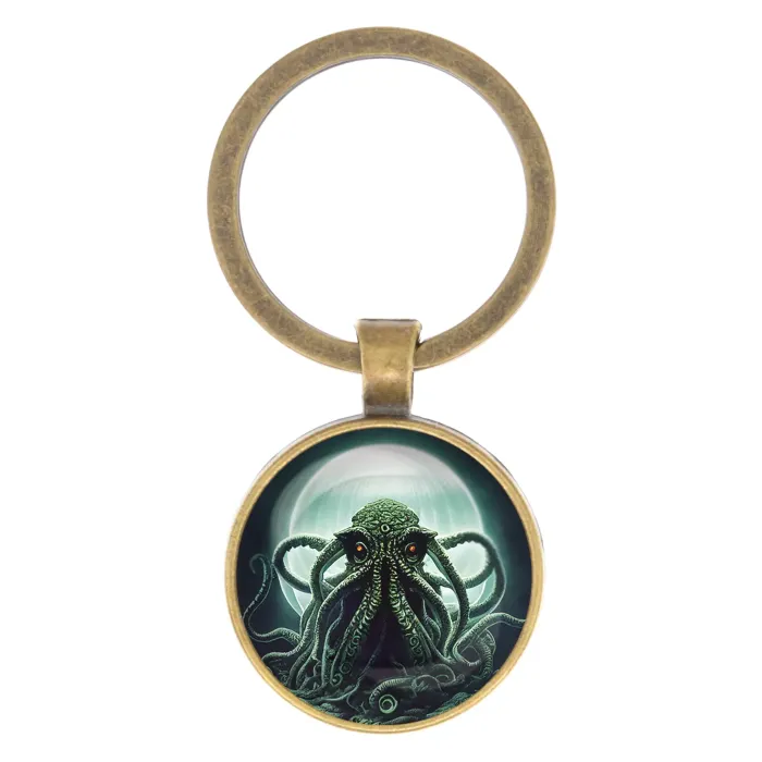 Брелок Ктулху — это стильный аксессуар, который станет отличным подарком для поклонников мистики и фэнтези. Изготовленный из бижутерного сплава с покрытием под бронзу, он обладает уникальным дизайном и прочностью. Диаметр брелка составляет 28 мм, а изображение под выпуклой стеклянной линзой придаёт ему особый эффект. Упаковка выполнена в виде прозрачного полипропиленового пакетика без подвеса, что делает его идеальным для подарка или личного использования.