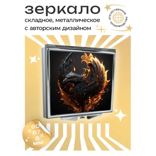 Складное квадратное зеркало с полноцветным изображением на металлической поверхности.
