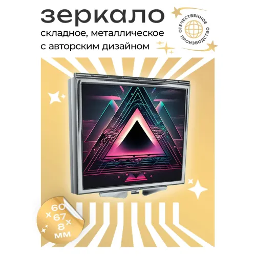 Складное зеркало квадратной формы с полноцветным изображением. Изготовлено из металла и стекла.