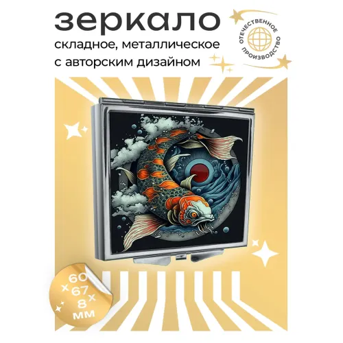 Складное зеркало квадратной формы с полноцветным изображением карпа.