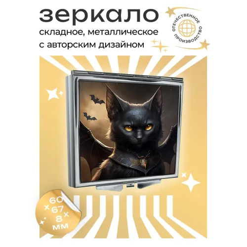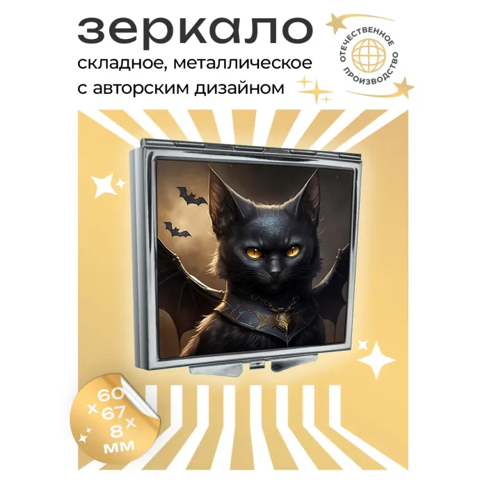 Складное зеркало квадратное Кот с крыльями ZER2-0254